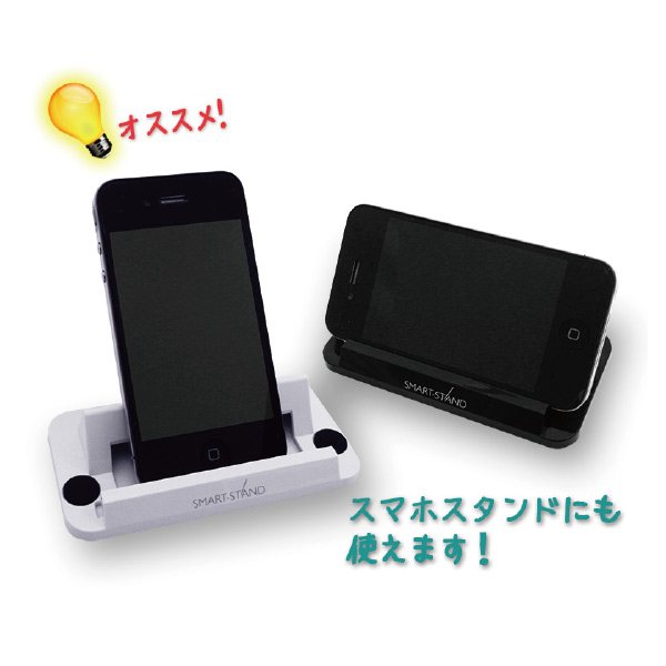 スマホスタンドにもなるスタンド付きで、縦・横両方の向きに置くことが出来ます。