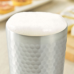 スマートなシルエットに存在感が際立つ槌目模様。抜群の保冷力で冷たさ長持ち!美味しさ持続の断熱二重構造になっております。