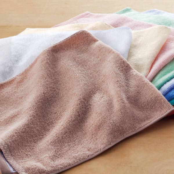 糸撚りの少ない「甘撚り糸」を使用。毛羽落ちを抑え、ふんわりした柔らかさを実現しています。お好みのカラーを選んで頂けるように、豊富なカラーバリエーションを揃えました。