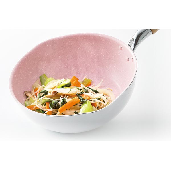 - ■材質: 本体/アルミニウム合金(内面/フッ素樹脂加工、外面/焼付塗装)、底面/ステンレス鋼、取っ手/天然木