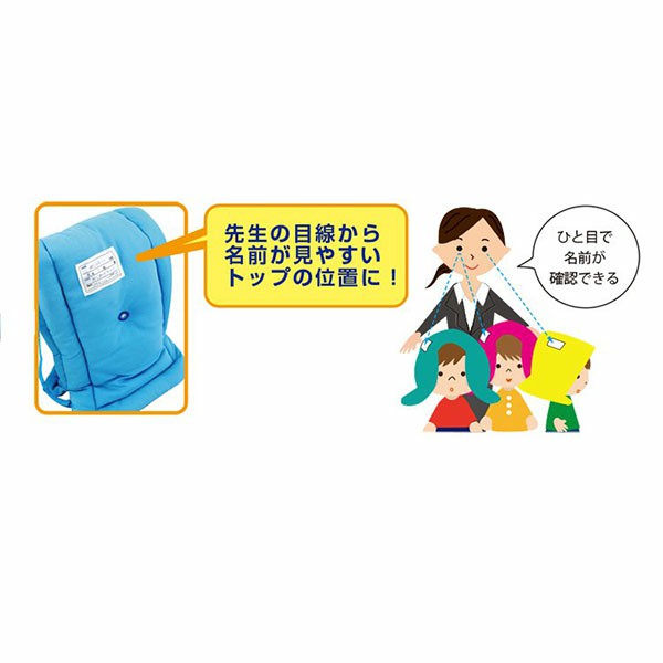 大人の目線から名前が見やすいトップの位置に名札があるのも嬉しいポイント。