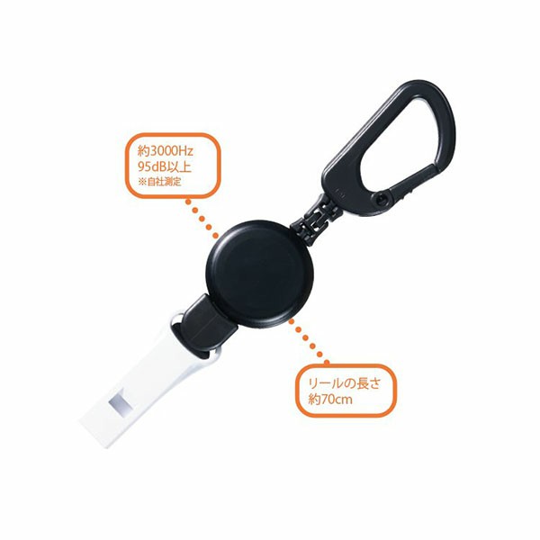 | 材質: | リールカバー/PVC、ボビン・ホイッスル/ABS、リールひも/ナイロン、バネ/ステンレス、ハトメ/真鍮(ニッケルメッキ)、ジョイントパーツ・カラビナ/POM |