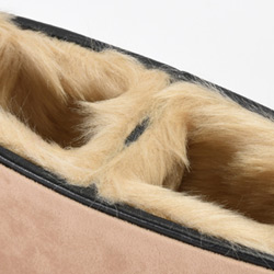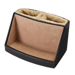 ブラックにブラウンのステッチが渋いメガネが3本収納できるスタンド。中が柔らかいボアで覆われており優しくキャッチしてくれます。