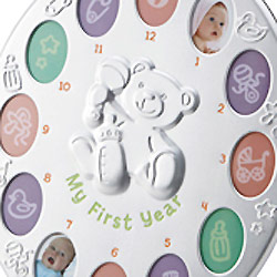 円の内側には写真を飾る小さなフレームがあり、お子様の成長の足跡をひと月にひとつのフレームにまとめられます。