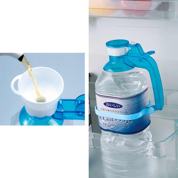 お年寄りや子供でも扱いやすいユニバーサルデザイン。薄手のペットボトルでも安心して注げるホルダーが付いています。