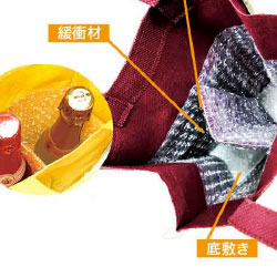 また、バッグ内側と仕切りに緩衝材を挟むことで、中の瓶を割らずに安全に運べます。