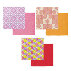 七宝×ピンク、格子桜×オレンジ、麻の葉紫×赤