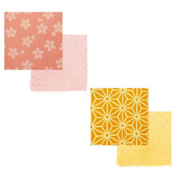 七宝ピンク×ピンク、格子桜×オレンジ、麻の葉紫×赤、麻の葉文×みどり、さくら×ピンク、麻の葉文×みかん