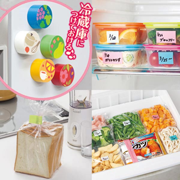 ◆用途/食品保存容器やフリーザーバッグの内容物・日付の表示用、冷凍食品の袋・スナック菓子の袋などの仮止め・密封用、ゴミ袋の口止め・補強用、メモ止め用