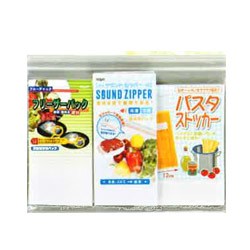 サウンドジッパー(M3枚)袋入、サウンドジッパー(L3枚)袋入、パスタストッカー2P、ブルーチャック・フリーザーパック(袋入)、クールロック(M3枚)袋入、クールロック(L3枚)袋入