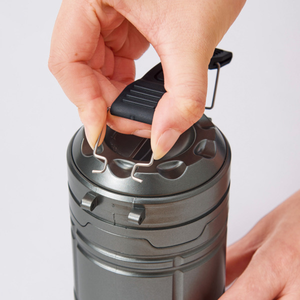 懐中電灯ON/OFFはボタンで、ランタンON/OFFはランタン部分を上に引き上げるだけの便利さ☆