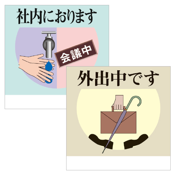 「外出中」か「社内」に居るかを知らせる連絡カード付き。