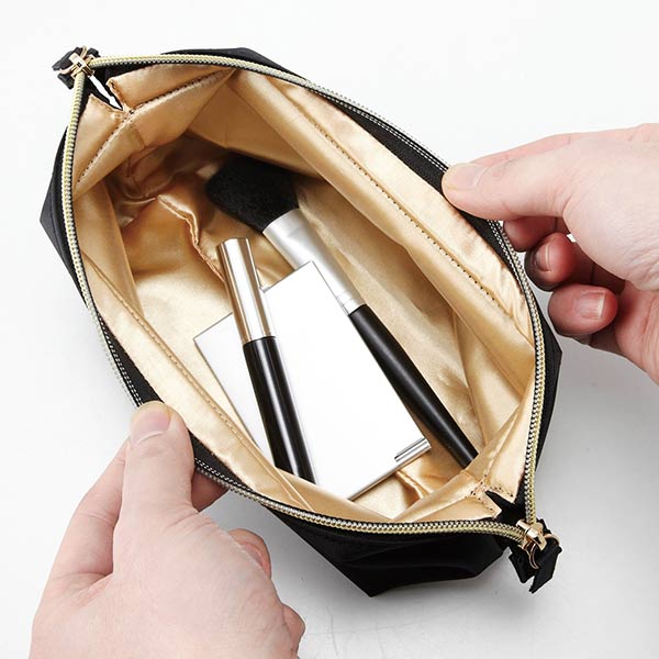 ファスナーの可動域が広いため開閉部分が大きく開き、ブラシなど長さのある物の出し入れがスムーズに行えます。